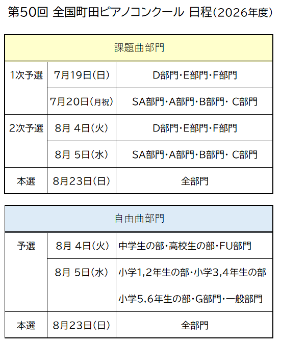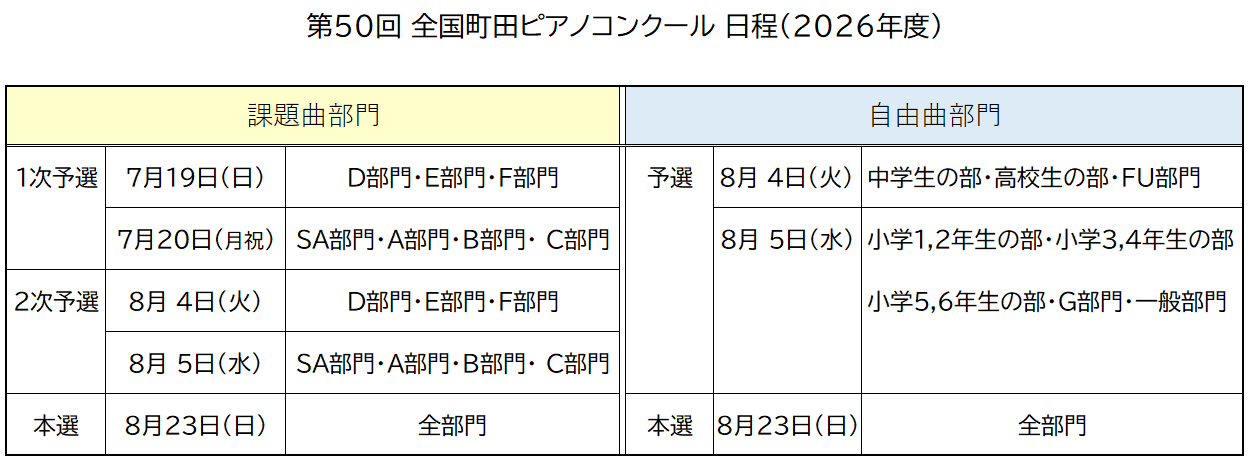 ♪ 第50回 全国町田ピアノコンクールの日程をお知らせします